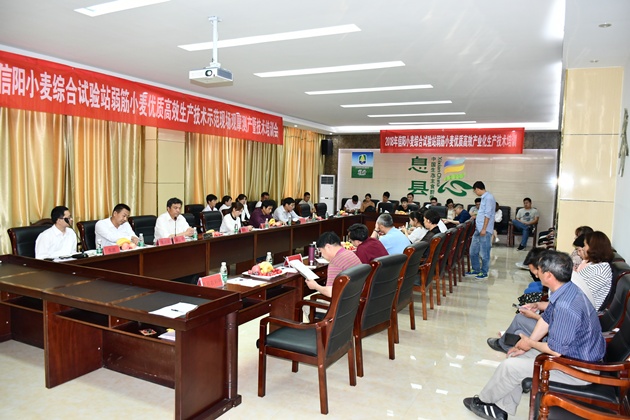 5月13日,國家、河南省小麥產(chǎn)業(yè)技術(shù)體系信陽(yáng)綜合試驗站召開(kāi)弱筋小麥生產(chǎn)加工現場(chǎng)觀(guān)摩暨培訓會(huì )。試驗站團隊成員、省農科院小麥所同志、羅山、息縣、淮濱、潢川、固始等示范縣技術(shù)骨干和面制品企業(yè)、供種企業(yè)、合作社、家庭農場(chǎng)等新型經(jīng)營(yíng)主題負責人、技術(shù)人員等40多人參加會(huì )議,國家小麥產(chǎn)業(yè)技術(shù)體系加工崗位專(zhuān)家、中國農業(yè)科學(xué)院加工研究所張波博士也應邀參會(huì )。信陽(yáng)小麥綜合試驗站站長(cháng)陳金平研究員主持會(huì )議。