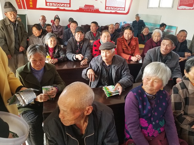 3月18日,我院小麥專(zhuān)家周?chē)诟毖芯繂T、花生專(zhuān)家余明慧副研究員、水稻專(zhuān)家申觀(guān)望副研究員等一行4人趕赴本院對口幫扶村——息縣小茴店鎮張老莊村開(kāi)展科技扶貧技術(shù)培訓和小麥生產(chǎn)服務(wù)活動(dòng),張老莊村30多戶(hù)種麥戶(hù)和農戶(hù)、村干部等40余人參加了培訓。