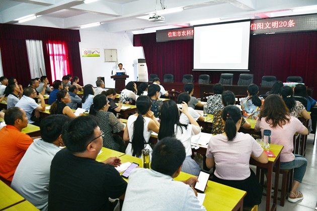 為提升廣大職工文明素養,加強省級文明單位建設,深入推進(jìn)全國文明城市創(chuàng )建工作,7月26日,我院開(kāi)展了踐行信陽(yáng)文明20條文明禮儀主題活動(dòng),全院80多名干部職工齊聚一堂,看視頻、齊發(fā)言、共討論、學(xué)知識、做點(diǎn)評,共同學(xué)習信陽(yáng)文明20條,從我做起,從現在做起,從小事做起,告別不文明陋習,爭當文明市民。