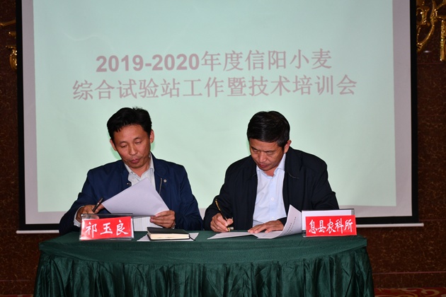 國家小麥產(chǎn)業(yè)技術(shù)體系信陽(yáng)綜合試驗站陳金平站長(cháng)和李宇峰研究員分別匯報了國家、河南省小麥產(chǎn)業(yè)技術(shù)體系信陽(yáng)綜合試驗站上年度的工作,各個(gè)示范縣依托單位也分別匯報了所承擔的試驗、示范等各項工作任務(wù)完成情況,大家還就上年度工作和小麥生產(chǎn)中存在的問(wèn)題及下一年度工作安排進(jìn)行了討論,試驗站與示范縣依托單位還簽訂了年度目標責任書(shū)。