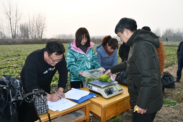 1月14日,我院邀請省農科院、信陽(yáng)農林學(xué)院、市蔬菜辦、市種子管理站、市植保植檢站、浉河區農業(yè)農村局專(zhuān)家,對河南省“四優(yōu)四化”優(yōu)質(zhì)蔬菜專(zhuān)項露地蔬菜專(zhuān)題黃心菜標準化生產(chǎn)技術(shù)集成及示范任務(wù)基地——浉河區富華種養殖專(zhuān)業(yè)合作社示范種植的黃心菜新品種“金烏藏嬌”進(jìn)行實(shí)地測產(chǎn)。