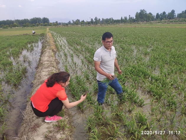 為推動(dòng)全市再生稻產(chǎn)業(yè)健康發(fā)展,我院近期組織專(zhuān)家團隊到一線(xiàn)指導。5月27日,專(zhuān)家團隊一行5人到固始、商城等縣調查再生稻生長(cháng)發(fā)育情況,并就當前的田間管理進(jìn)行技術(shù)指導。