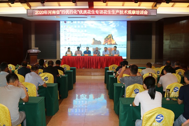 為加強優(yōu)質(zhì)花生綠色高效生產(chǎn)技術(shù)示范引領(lǐng),推動(dòng)我市花生產(chǎn)業(yè)健康快速發(fā)展,8月14日,由省農科院經(jīng)作所主辦,我院和羅山縣農科所聯(lián)合承辦的河南省“四優(yōu)四化”優(yōu)質(zhì)花生專(zhuān)項生產(chǎn)技術(shù)觀(guān)摩培訓會(huì )在羅山召開(kāi),羅山縣各鄉鎮花生種植大戶(hù)代表60余人參加了會(huì )議。