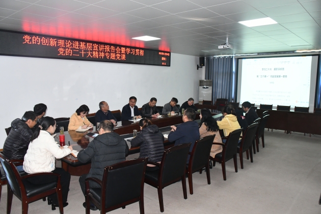 為深入學(xué)習貫徹黨的二十大精神,11月15日下午,我院舉辦黨的創(chuàng )新理論進(jìn)基層宣講報告會(huì )暨學(xué)習貫徹黨的二十大精神專(zhuān)題黨課。院黨委委員、副院長(cháng)劉祥臣作專(zhuān)題宣講。信息科科長(cháng)鄒俊主持會(huì )議,院屬部分支部黨員干部30余人參會(huì )。