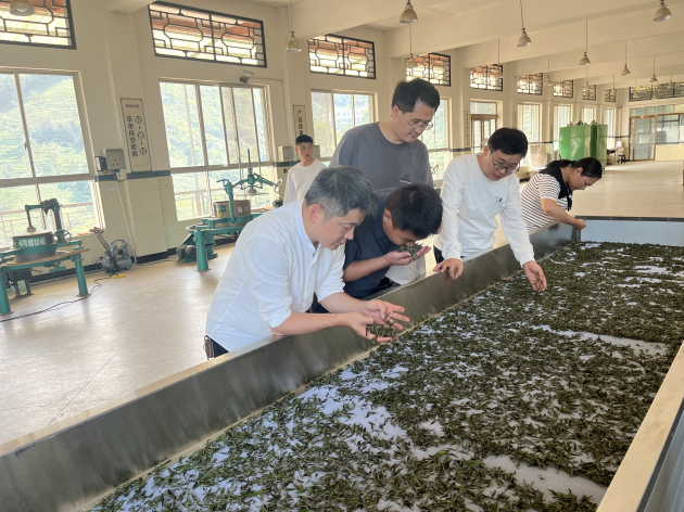 茶葉所所長(cháng)蔣雙豐參加的第一組專(zhuān)家團隊到信陽(yáng)市文新茶葉有限公司開(kāi)展技術(shù)指導,專(zhuān)家組提出用科技賦能手段,進(jìn)一步延伸茶葉精深加工鏈條,應用現代生物、大數據、人工智能等技術(shù)改造提升茶產(chǎn)業(yè)發(fā)展,走出一條綠色發(fā)展之路。