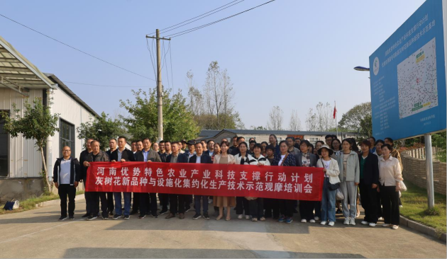 10月8-9日,由我院主辦的2024年度河南優(yōu)勢特色農業(yè)產(chǎn)業(yè)科技支撐行動(dòng)計劃灰樹(shù)花新品種與設施化集約化技術(shù)觀(guān)摩培訓會(huì )在信陽(yáng)新縣召開(kāi)。我院黨組成員、副院長(cháng)梁成強,新縣農業(yè)農村局黨組成員、副局長(cháng)劉藝平等領(lǐng)導出席會(huì )議;院特色作物所所長(cháng)龔鳳萍、推廣科科長(cháng)張應香及食用菌科技人員,新縣原種服務(wù)中心和菌辦專(zhuān)業(yè)技術(shù)人員,新縣各鄉鎮(街道)鄉村建設辦公室主任、科技特派員、食用菌企業(yè)和合作社代表等80余人參加會(huì )議。