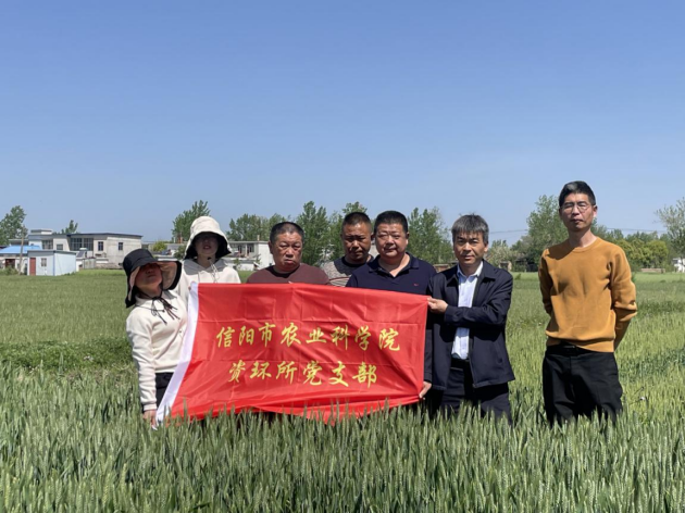在光山縣明豐農業(yè)農機專(zhuān)業(yè)合作社,黨員干部到我院育成的“信麥163”良種示范田查看小麥生長(cháng)情況。資環(huán)研究所黨支部書(shū)記呂玉虎指出,當前正處于小麥拔節孕穗關(guān)鍵期,水肥需求量大。針對近期持續干旱,建議密切關(guān)注天氣變化,及時(shí)采取澆水抗旱措施;并可葉面噴施磷酸二氫鉀或含有聚谷氨酸、黃腐酸鉀的水溶性肥料,注意加大噴水量,減緩旱情對小麥生長(cháng)的不利影響。