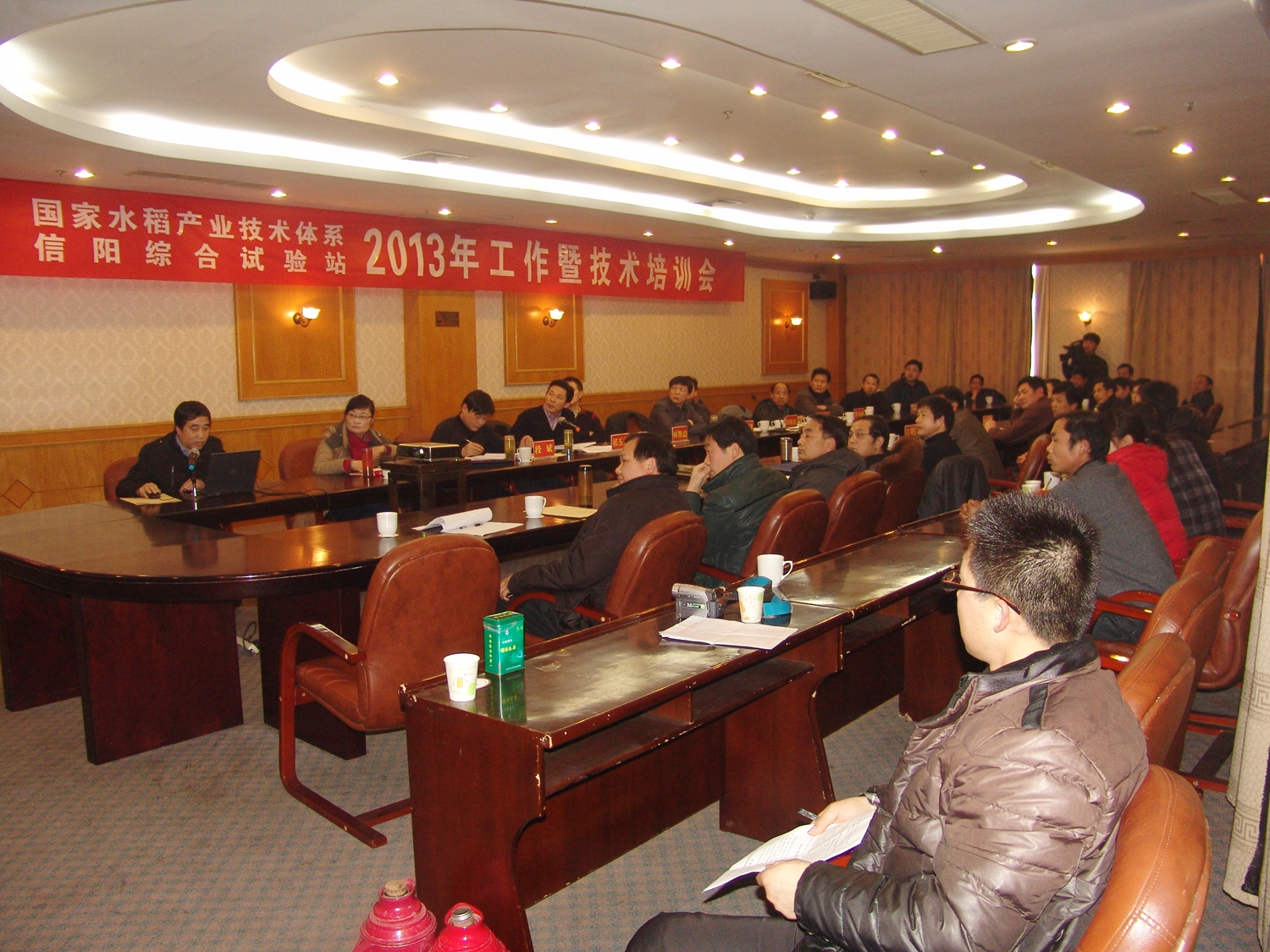 1月18日,國家水稻產(chǎn)業(yè)技術(shù)體系信陽(yáng)綜合試驗站召開(kāi)2013年工作暨技術(shù)培訓會(huì ),綜合試驗站團隊成員,羅山、平橋、息縣、潢川、固始五個(gè)體系示范縣區技術(shù)骨干及依托單位分管領(lǐng)導,市農科院有關(guān)科室負責人和水稻科研人員50余人參加了會(huì )議。市農業(yè)局科教科負責同志應邀出席并講話(huà)。