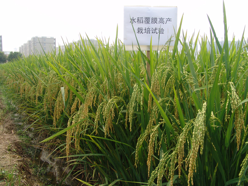 該技術(shù)已開(kāi)始在我市固始、羅山等部分鄉鎮示范推廣,目前各示范點(diǎn)覆膜水稻均長(cháng)勢良好。在羅山縣周黨鎮青龍村,村民們看到覆膜后的水稻插秧后基本處于“脫管”狀態(tài),不施農藥,不需灌溉,與周?chē)咎锵啾,植株更加健壯,長(cháng)勢更好,紛紛表示今后也要采用此項技術(shù),不僅可解決高塝田、望天田抽水難的問(wèn)題,而且少施農藥,產(chǎn)量更高。