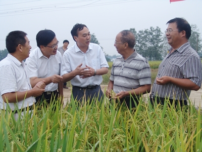 2013年9月4日至5日,福建省農科院原院長(cháng)、我國著(zhù)名雜交水稻育種專(zhuān)家、中國科學(xué)院院士謝華安來(lái)信陽(yáng)市調研水稻生產(chǎn)情況、指導水稻科研工作。