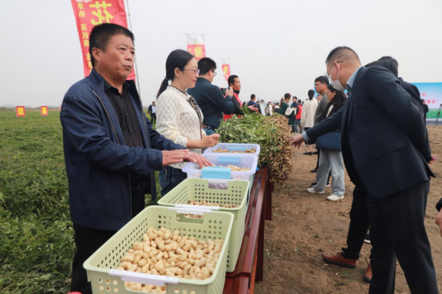 二、10月12日,由河南省農科院、國家花生產(chǎn)業(yè)技術(shù)體系、河南省花生產(chǎn)業(yè)技術(shù)體系主辦,息縣人民政府承辦,信陽(yáng)市農科院協(xié)辦的河南優(yōu)勢特色農業(yè)產(chǎn)業(yè)科技支撐行動(dòng)計劃高油酸花生豫花65號產(chǎn)業(yè)化發(fā)展研討?hù)攥F場(chǎng)觀(guān)摩會(huì )在息縣成功召開(kāi)。河南省農科院副院長(cháng)衛文星河南種業(yè)集團董事長(cháng)侯傳偉,信陽(yáng)市委常委、副市長(cháng)李俊,信陽(yáng)市農科院黨組書(shū)記李杰、院長(cháng)鐘思志,息縣縣委書(shū)記管保臣、代縣長(cháng)鄭春等出席會(huì )議。與會(huì )人員現場(chǎng)觀(guān)摩了息縣路口鄉彎柳樹(shù)村河南省“四優(yōu)四化”優(yōu)質(zhì)高油酸花生示范基地內豫花65號田間生長(cháng)表現。經(jīng)專(zhuān)家組現場(chǎng)測產(chǎn),豫花65號千畝示范方平均畝產(chǎn)達430.22公斤。研討會(huì )上,與會(huì )專(zhuān)家代表圍繞高油酸花生品種、種植、加工及產(chǎn)業(yè)化發(fā)展做了交流發(fā)言,分析了現狀與問(wèn)題,提出了對策與建議。
