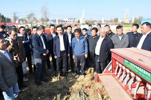 10月22日,由國家小麥產(chǎn)業(yè)技術(shù)體系、信陽(yáng)市人民政府主辦,我院、信陽(yáng)市農業(yè)農村局、息縣人民政府承辦,息縣宏升糧食制品有限公司協(xié)辦的國家小麥產(chǎn)業(yè)技術(shù)體系“信陽(yáng)稻茬小麥免耕帶旋播種現場(chǎng)觀(guān)摩暨技術(shù)培訓會(huì )”在息縣成功召開(kāi)。國家小麥產(chǎn)業(yè)技術(shù)體系首席科學(xué)家劉錄祥研究員、河南農業(yè)大學(xué)郭天財教授、信陽(yáng)市副市長(cháng)汪明君、院黨組書(shū)記李杰等出席會(huì )議。會(huì )議分現場(chǎng)觀(guān)摩和室內培訓兩個(gè)階段進(jìn)行,息縣縣委副書(shū)記、代縣長(cháng)鄭春,院長(cháng)鐘思志先后主持會(huì )議。