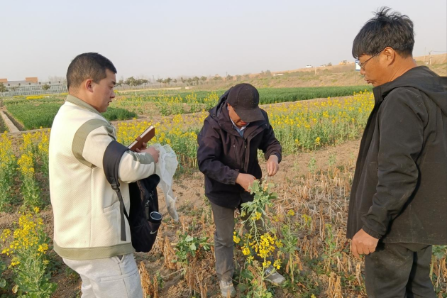 此次調研工作,李國慶一行先后前往息縣曹黃林鎮楊店村、馮莊村及八里岔鄉等油菜示范基地,深入田間仔細察看油菜病害發(fā)生情況,并針對當前油菜發(fā)生病害及油菜花期管理對種植戶(hù)進(jìn)行實(shí)地技術(shù)指導,幫助農戶(hù)切實(shí)抓好油菜菌核病和黑莖病的防治和田間管理工作,為信陽(yáng)地區油菜豐產(chǎn)豐收“保駕護航”,為實(shí)現信陽(yáng)油菜產(chǎn)業(yè)升級,助力鄉村振興、譜寫(xiě)“美好生活看信陽(yáng)”絢麗新篇章貢獻農科力量。